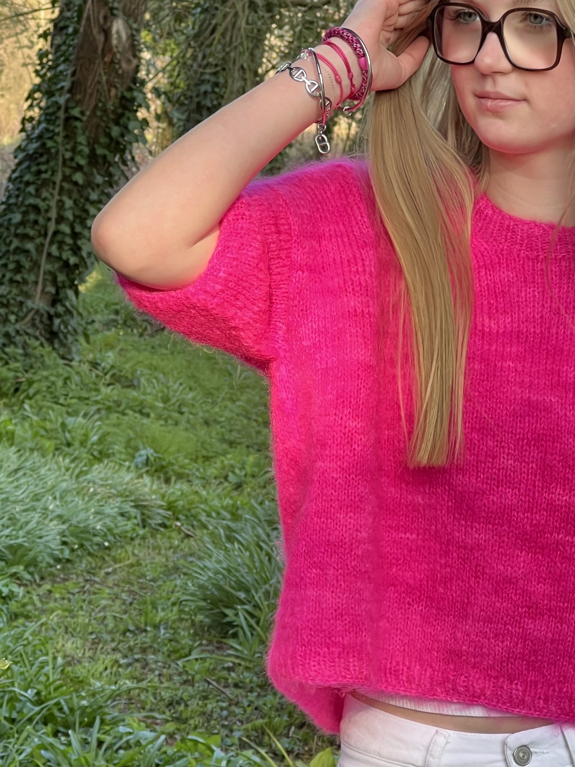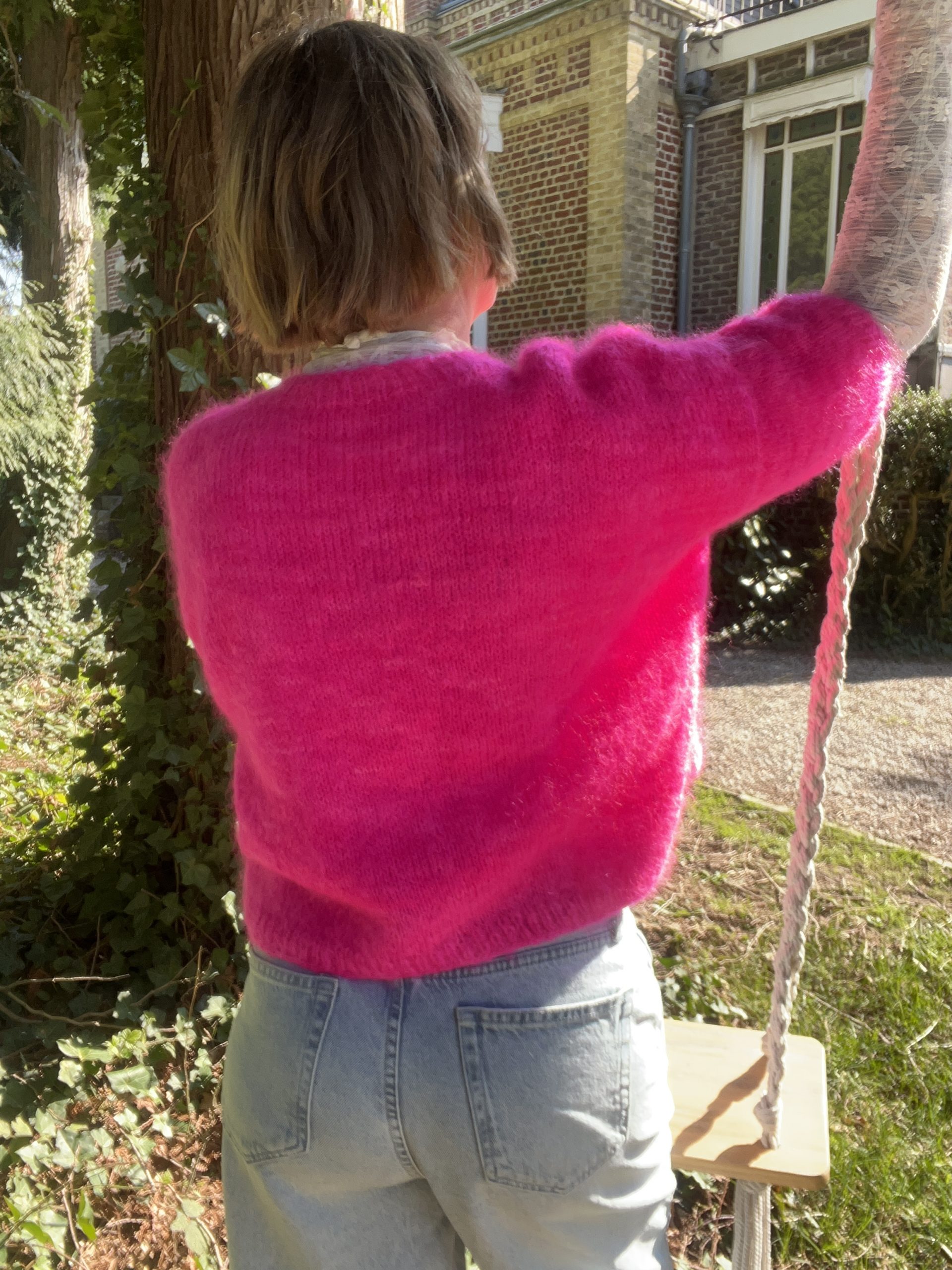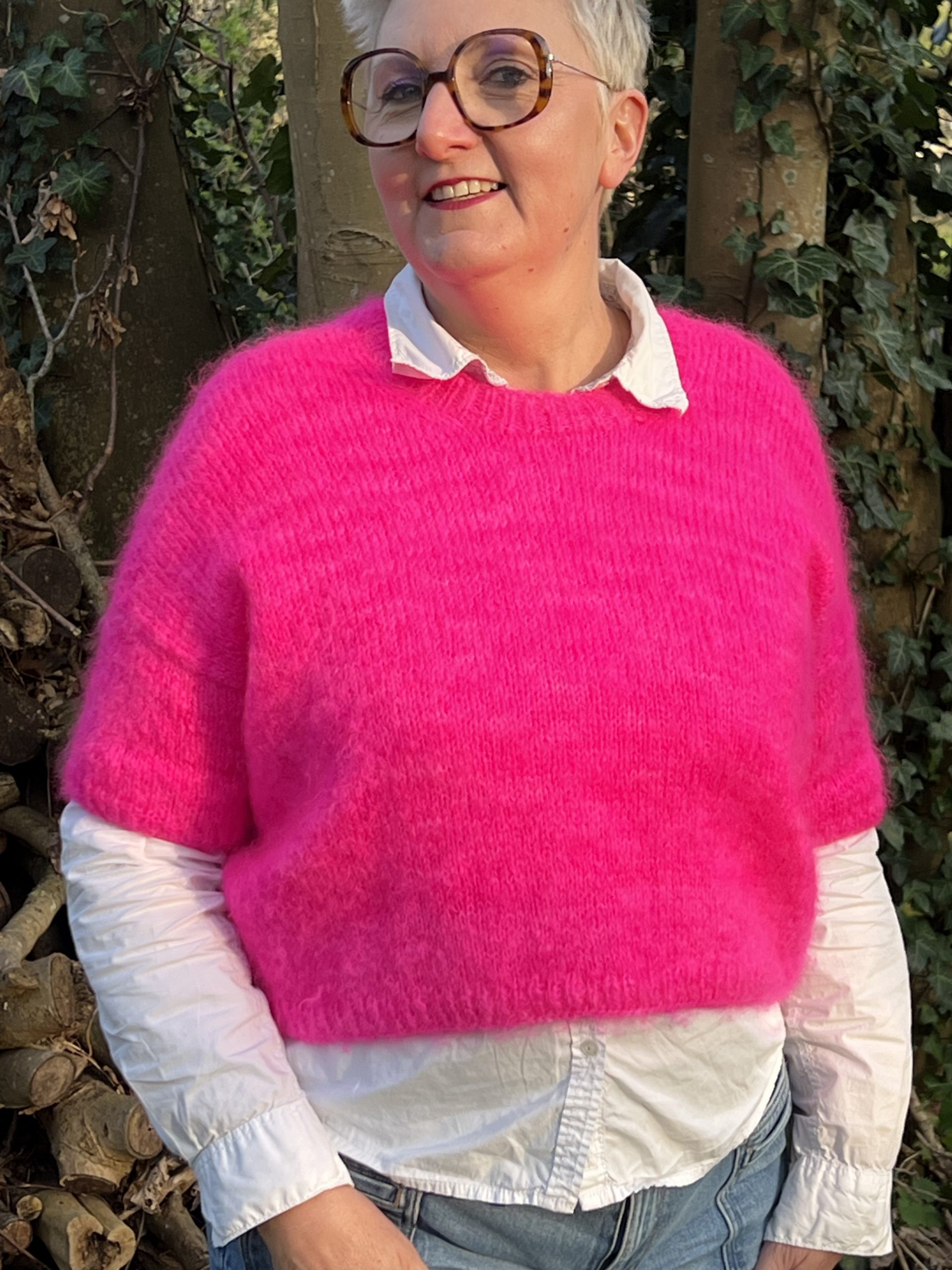 Le pull Miss Harley Quinn, se tricote du haut vers le bas en une seule pièce. Il est doux, aérien et confortable avec un style moderne. Il se tricote avec 3 écheveaux de Tinctura Dk Mohair pour une taille unique avec un tour de poitrine compris entre 84 et 108 cm. Il devient un indispensable cosy et stylé de votre garde-robe et un parfait allié pour les journées fraîches ou superpositions élégantes.